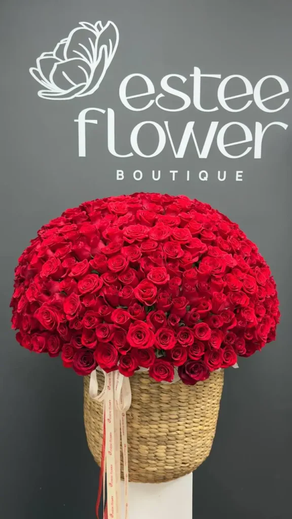 501 Red Roses Basket features hundreds of tightly arranged red roses forming a dense, rounded silhouette with strong depth and structure. Petal layers create soft movement across the surface, while uniform stem placement keeps the shape precise and balanced. In floral tradition, red roses symbolize deep love, devotion, and lasting commitment, often chosen for major life moments. This rose basket delivers presence, confidence, and emotional clarity in one refined composition. We offer same-day delivery in Miami.