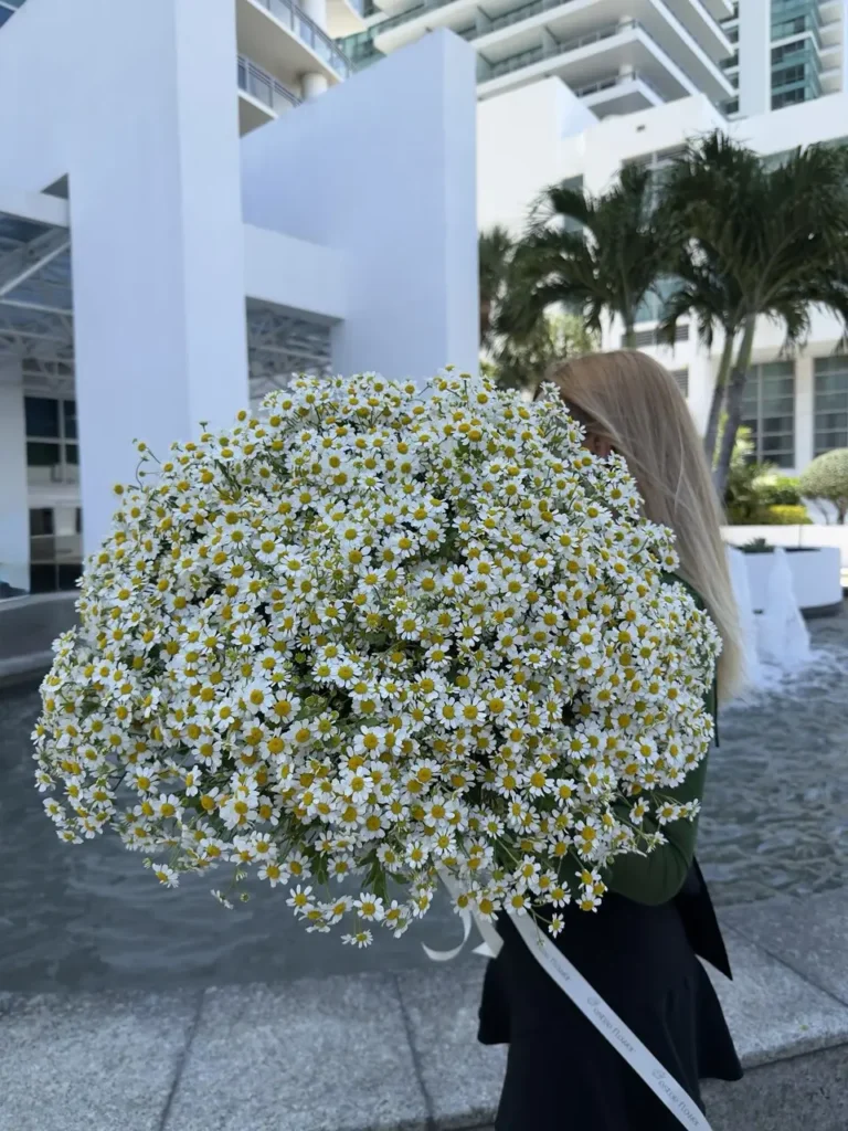 Chamomiles (daisies) bouquet brings a clean, summery look with bright white petals and sunny yellow centers. Each stem feels light and airy, creating a natural, relaxed shape in the vase. Chamomiles have a fresh, soft herbal scent that feels pure and uplifting. This chamomiles bouquet suits birthdays, graduations, baby showers, summer parties, and “thinking of you” gifts.