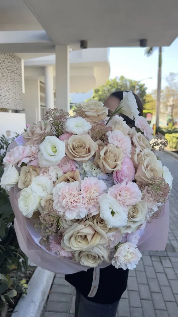 Coffee Time Bouquet blends premium beige roses with lisianthus, carnations, and seasonal flowers in a romantic bouquet with calm, polished color. Beige roses create a soft focal point, while lisianthus and carnations add layered texture and gentle movement. Coffee Time Bouquet feels warm and intimate, with neutral tones that suit modern interiors and classic celebrations. We offer same-day delivery in Miami.