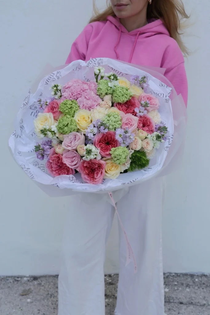 Dopamine bouquet brings a vibrant mix of pink, lavender, coral, green, and yellow flowers. This bouquet suits Mother’s Day, birthdays, anniversaries, baby showers, thank you gifts, and thoughtful thinking of you moments. Choose Dopamine bouquet in size XS, S, M, L, or XL to match the moment, from a delicate gesture to a fuller bouquet.