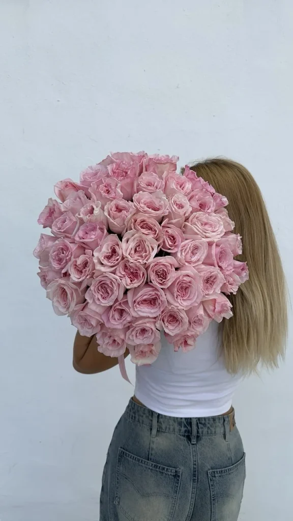 Pink O’hara roses bouquet highlights the refined character of one of the most recognized garden rose varieties. Pink O’hara roses feature full, rounded blooms with many soft petals arranged in tight layers, a form admired by European florists for decades. The blush pink color appears deeper toward the center and lighter along the outer petals, creating a smooth color transition. Pink O’hara roses often symbolize admiration, tenderness, and refined affection, making the bouquet feel calm and intentional without excess. We offer same-day delivery in Miami.